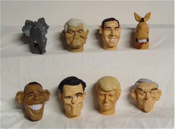 These puppet heads of famous politicians were generously donated by Eric Papalini of the Punching Politicians company. To see the